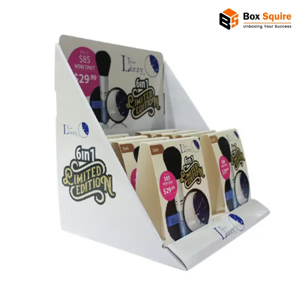Cosmetic display boxes from Box Squire help your products stand out in retail spaces. Designed with durable materials and custom printing, these displays enhance visibility and organization. Choose custom sizes, layouts, and finishes to showcase cosmetics professionally while boosting brand recognition and in-store sales.