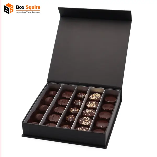 Showcase artisanal chocolates in beautiful Custom Bonbon Boxes with specialized divider inserts. Box Squire provides luxury finishes and food-safe, sturdy construction. Design options include viewing windows and elegant texturing to highlight craftsmanship and justify a premium price point.