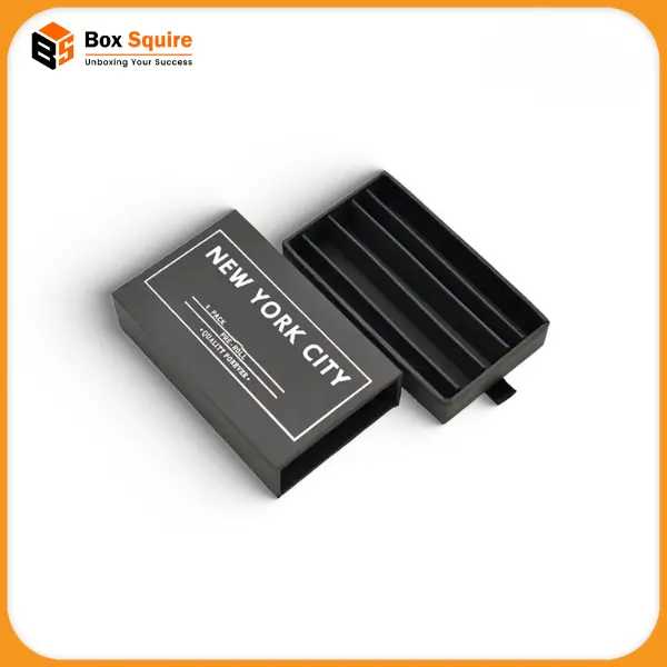 Offer a high-end experience with sleek Custom Drawer Cigarette Boxes. The unique slide-out style adds a touch of luxury and novelty. Box Squire can finish these rigid boxes with premium materials like matte black or soft-touch coating to justify a higher price point.