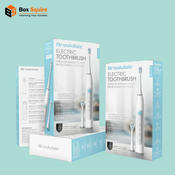 Custom electric toothbrush packaging from Box Squire is designed to protect powered toothbrushes and accessories while enhancing retail presentation. Made with durable materials and custom printing, this packaging supports secure storage and display. Choose custom sizes, inserts, finishes, and eco-friendly options for professional presentation in local and international markets.