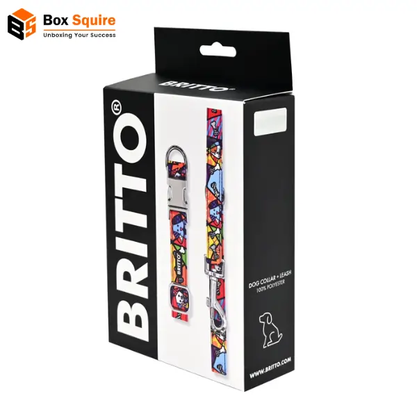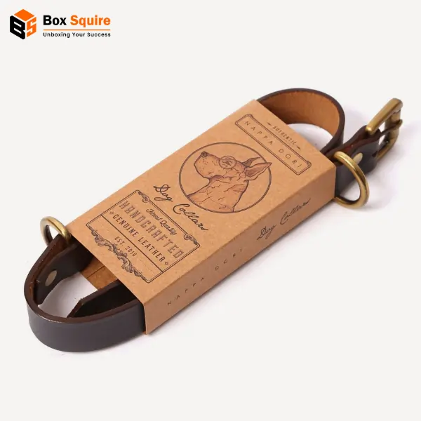 Leash and collar packaging by Box Squire protects your products with eco-friendly, customizable boxes that boost brand visibility and ensure safe delivery. Simple to assemble and durable for retail display.