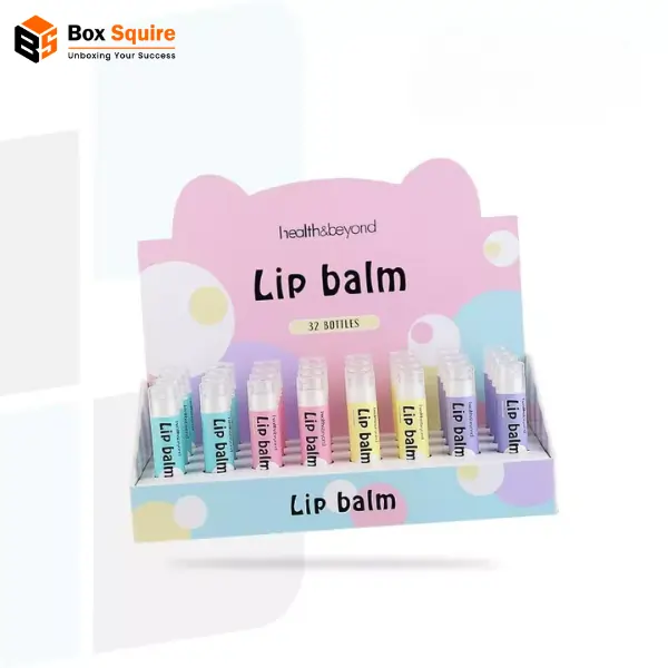 Custom lip balm display boxes from Box Squire are designed to organize products and increase visibility at the point of sale. Built with sturdy materials and custom printing, these displays help brands attract customers and boost impulse purchases. Choose custom layouts, sizes, and eco-friendly options for retail-ready presentation.