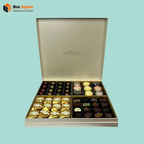 Elevate your brand with truly premium Luxury Chocolate Boxes from Box Squire. We offer bespoke rigid boxes with magnetic clasps and custom-molded inserts. Utilize foil stamping, embossing, and matte lamination to create an elite, unforgettable packaging experience that signifies unparalleled quality.