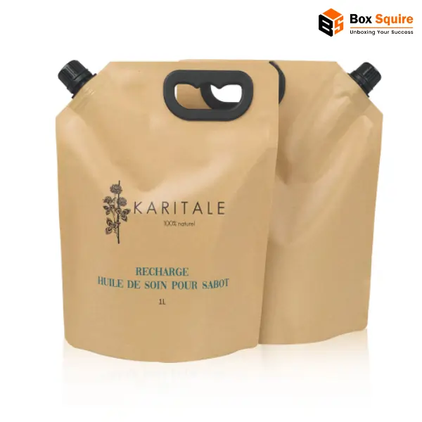 Box Squire offers custom spout pouches made to your specifications. Whether you are packaging juice, detergent or shampoo, these pouches offer leak resistance, shelf stability and strong brand visibility.